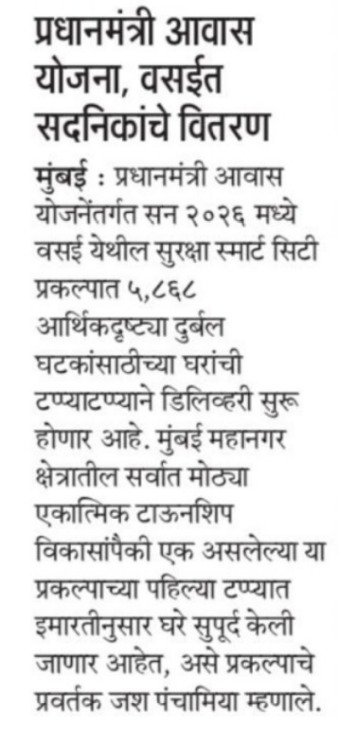 5868 PMAY units lined up for delivery at Suraksha Smart City, Vasai