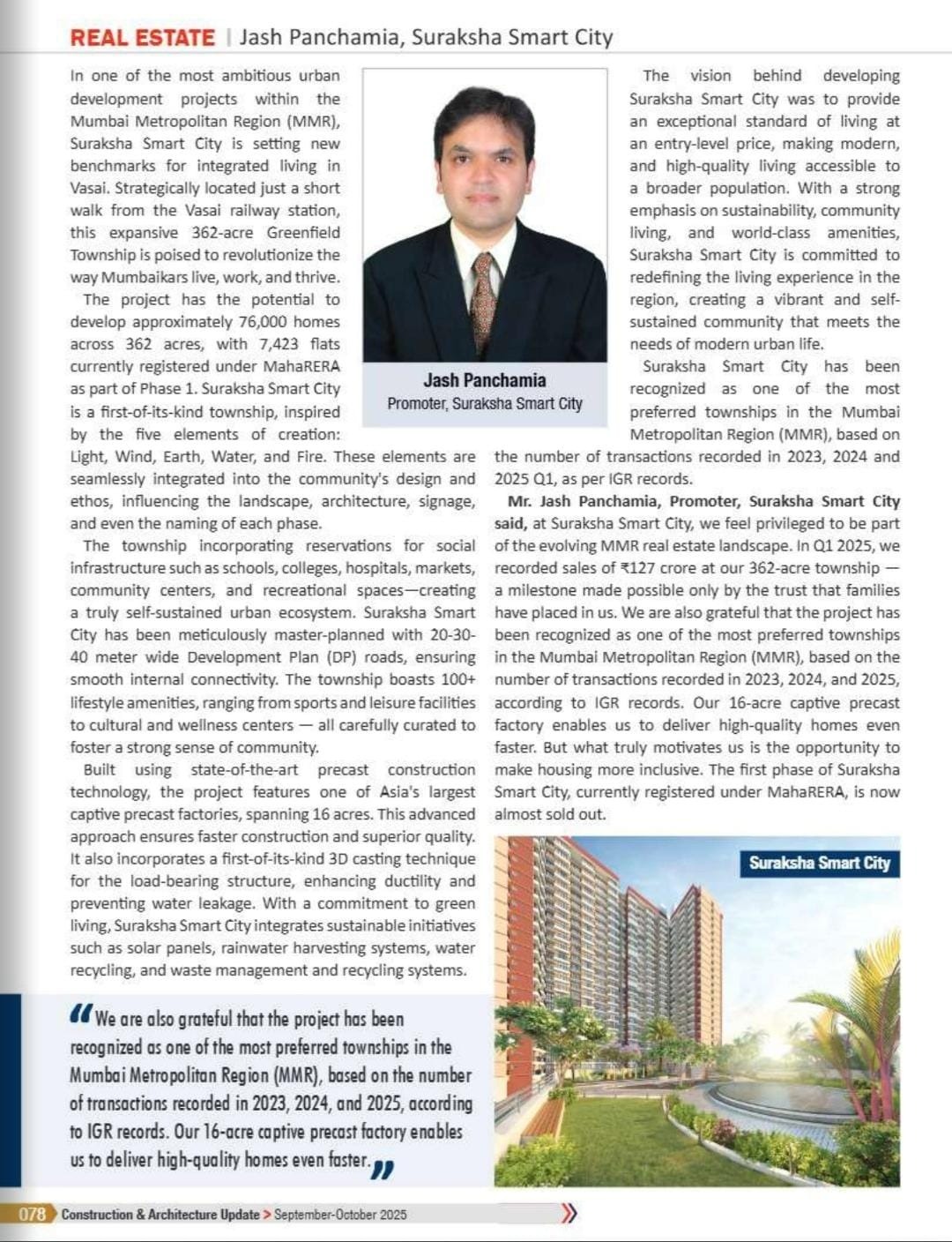 Suraksha Smart City has established one of Asia’s largest captive precast factories within the MMR in Vasai to cater to this project.